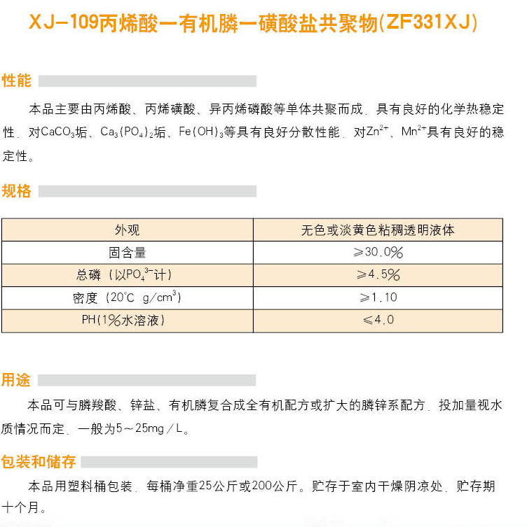 XJ-109 丙烯酸-磺酸鹽-膦酸三元共聚物(ZF331XJ)